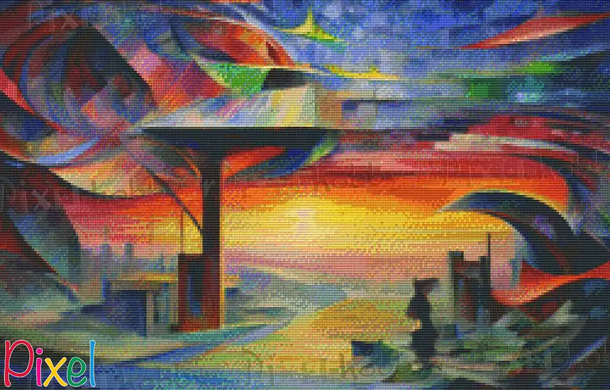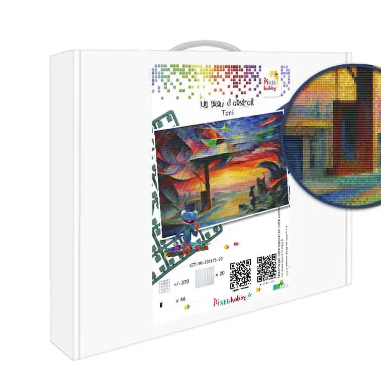Le kit de pixel art proposé par pixel-hobby.fr représente un paysage asiatique représenté empreint de symbolisme et de beauté. Au premier plan, nous pouvons deviner une porte torii, un élément architectural traditionnel japonais qui symbolise l'entrée dans un lieu sacré. La porte torii est partiellement visible, ce qui crée un sentiment de mystère et d'invitation à explorer davantage.