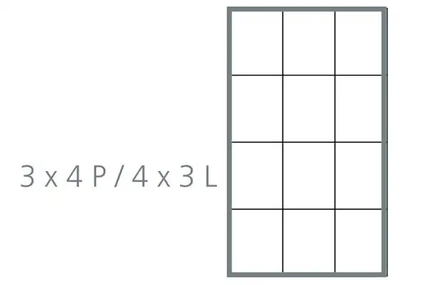 Convient pour assemblage de douze plaques 10x12cm (plaques en mode paysage: 4 colonnes pour 3 lignes ou en mode portrait: 3 colonnes pour 4 lignes) par queues d'arondes ou collé sur la plaque de fond.