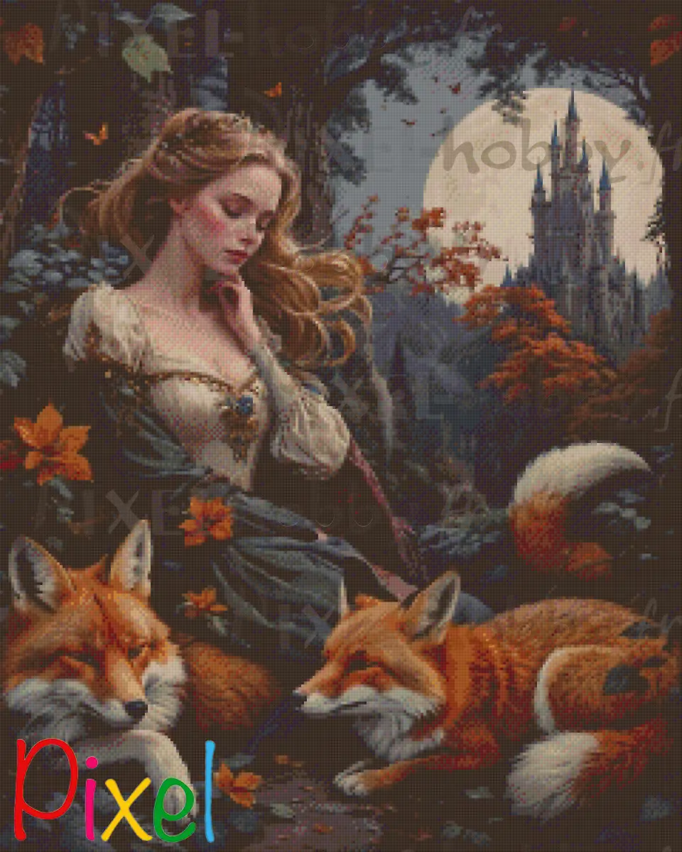 Des renards sont allongés contre elle, alors que cet animal est souvent associé à la ruse et à la sagesse dans de nombreuses cultures, ici, ils sont comme des protecteurs de la jeune fille endormie.
