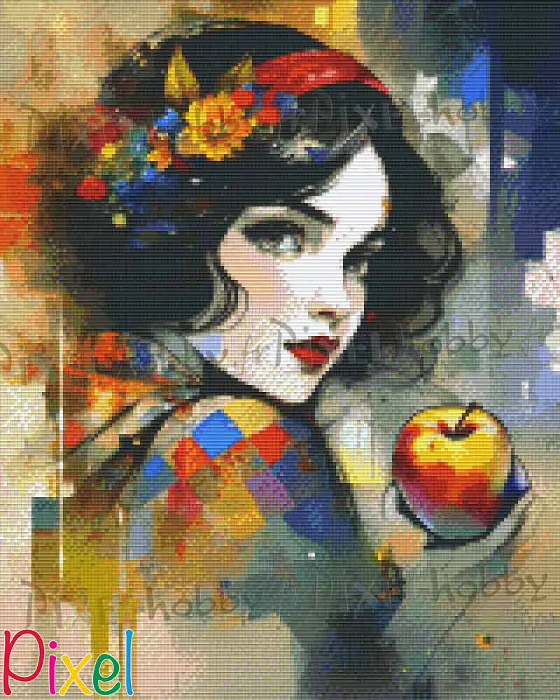 Cette illustration est une interprétation du conte populaire "Blanche Neige".