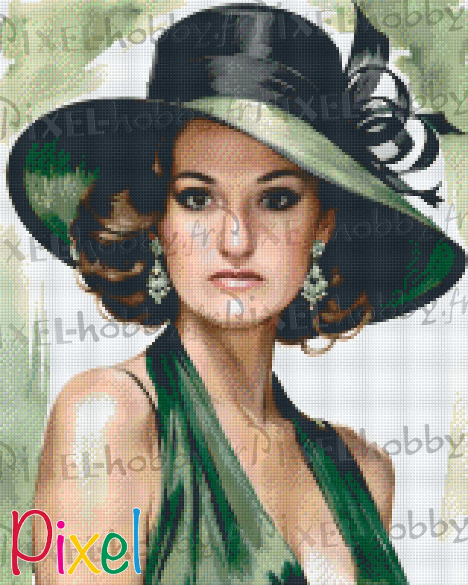 Le chapeau à larges bords, qui a une élégante teinte noire agrémentée d'une nuance verdâtre, renforce l'image d'une femme sophistiquée.