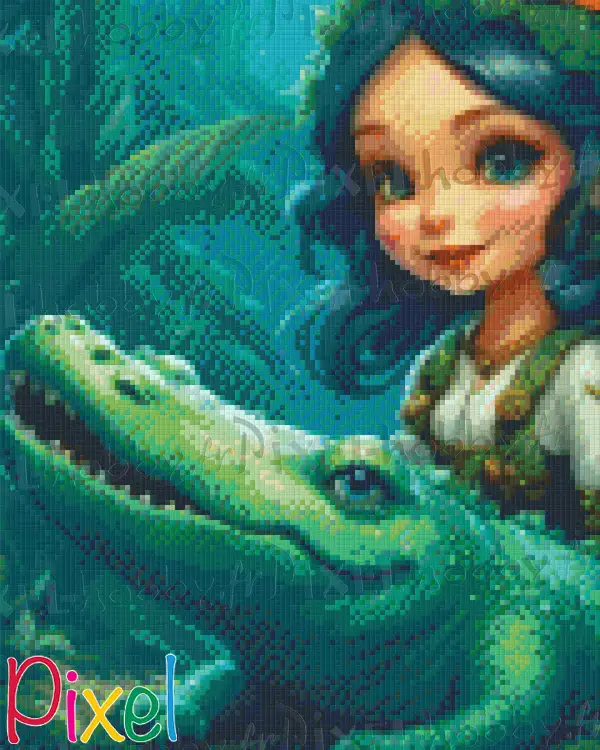 L'expression de la jeune fille, mêlée à celle du crocodile, crée un moment de complicité qui convient parfaitement à la magie de cette illustration.