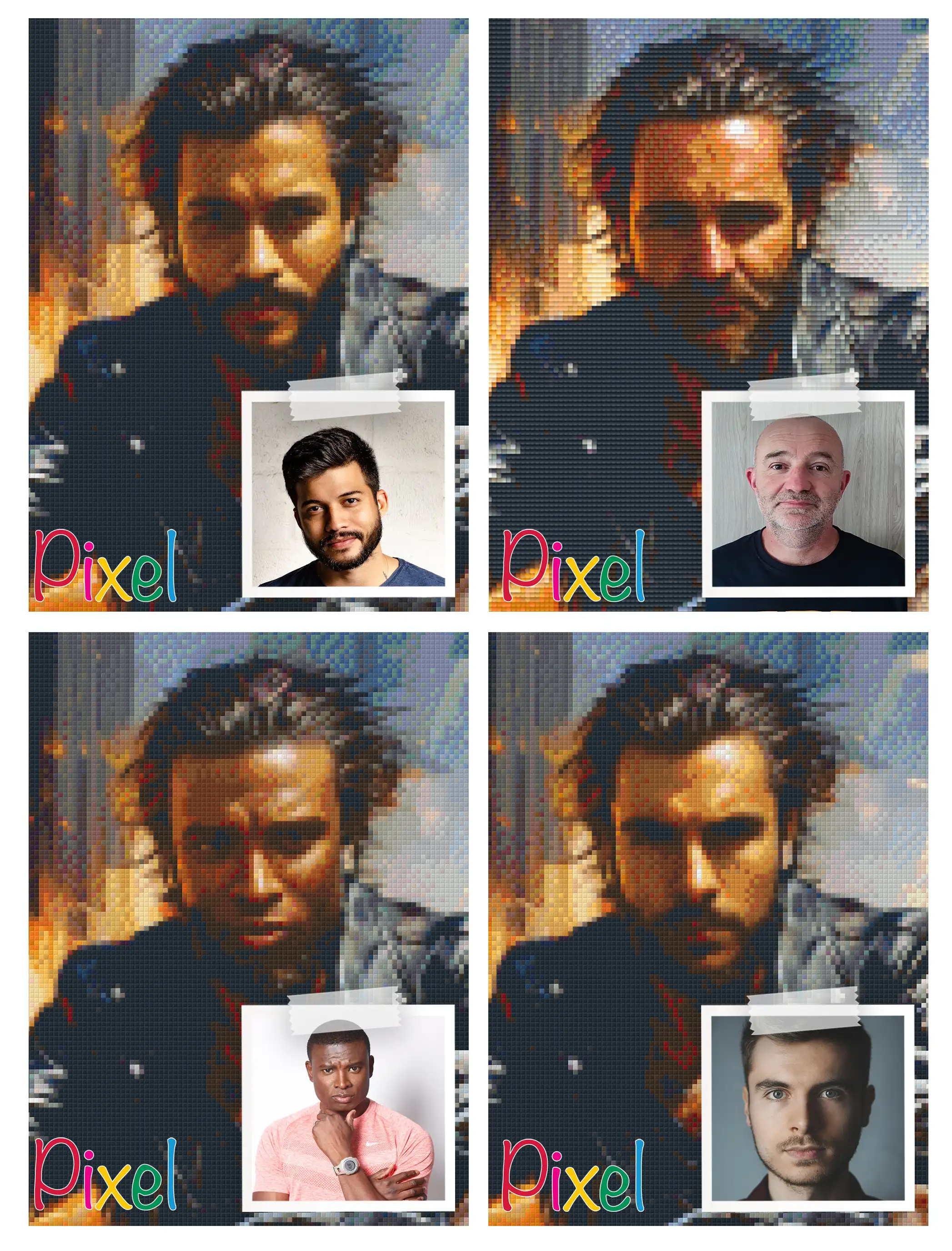 - Dans la journée ou le lendemain (jour ouvré), nous vous envoyons par email un aperçu du rendu final du tableau pixelhobby avec votre visage afin que vous puissiez valider