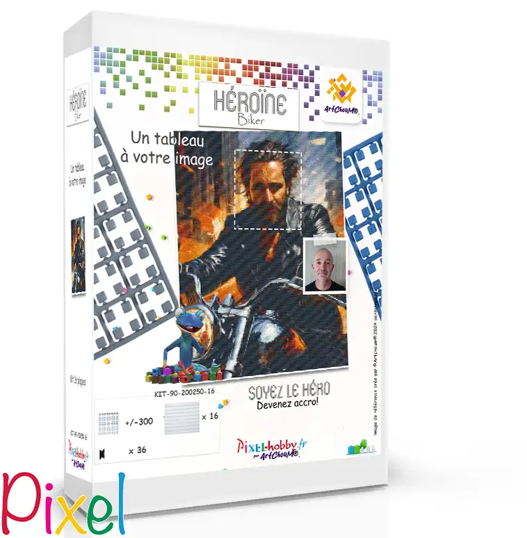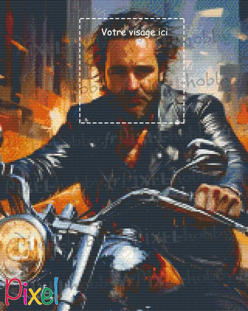 Personnalisez à votre visage ou celui de quelqu'un que vous aimez ce biker avec notre kit personnalisé pixelhobby.fr !