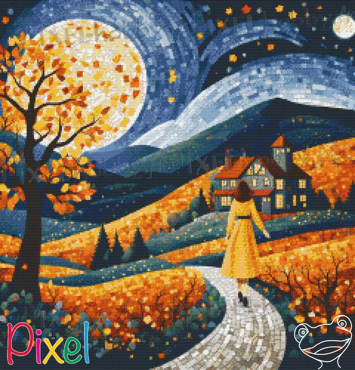 Ce tableau a pour dimension finale: 60.7 x 63.4 cm et comprend 60000 pixels.