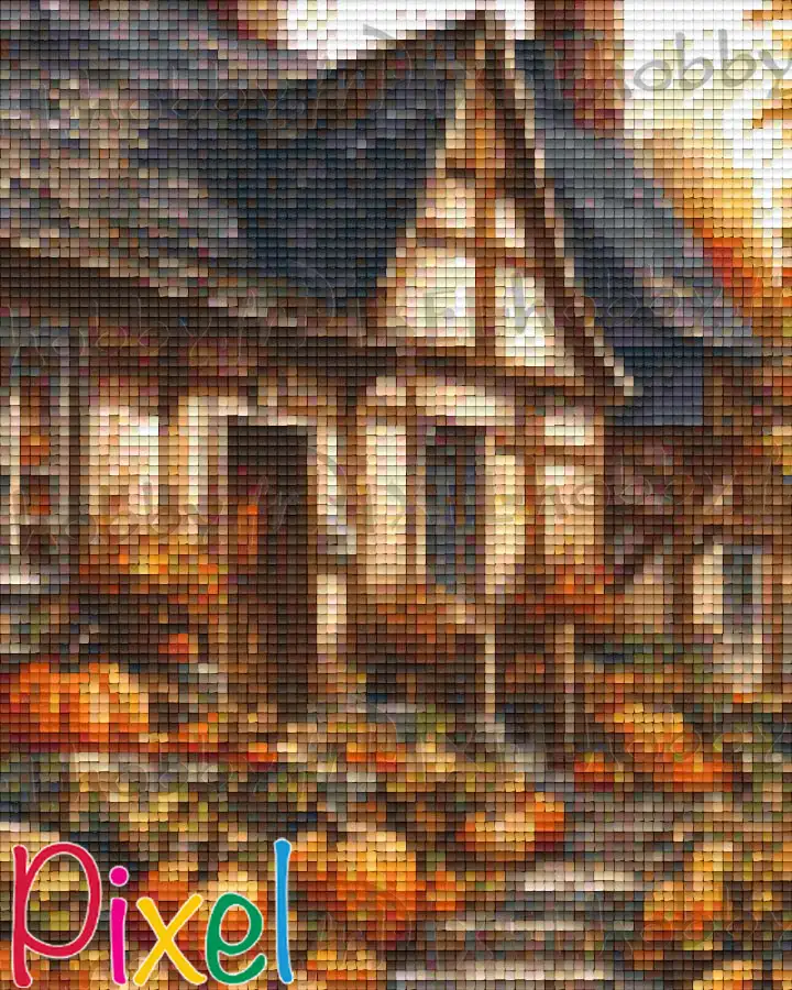 La présence de citrouilles de différentes tailles, typiques de la saison automnale, accentue le thème de la récolte et des festivités d'Halloween. Chaque citrouille peut porter une signification différente, des plus petites symbolisant les premières récoltes aux plus grandes pouvant représenter des événements marquants ou des familles.