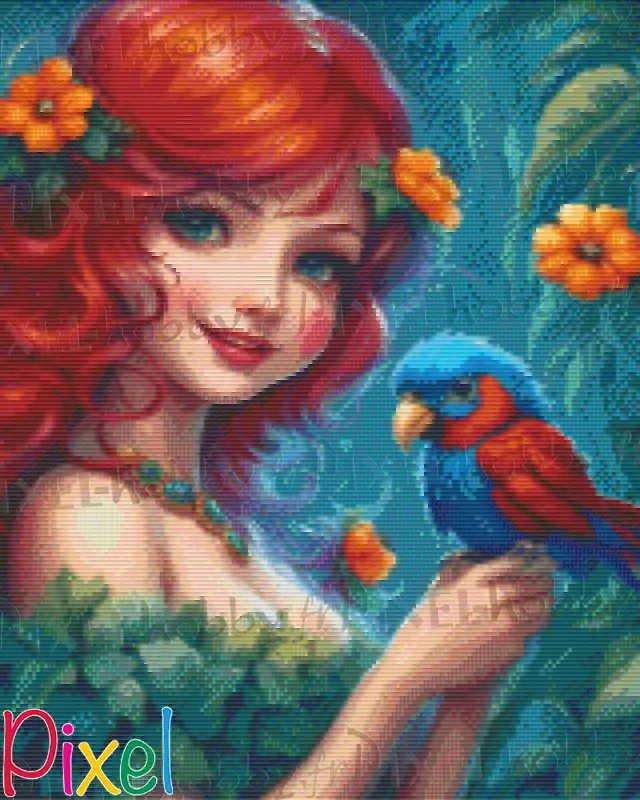 Ensemble, la femme et le perroquet créent un équilibre visuel, mettant en avant la beauté et la diversité de la faune et de la flore.