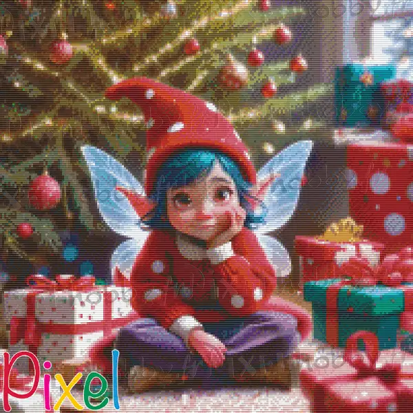 Cette illustration représente un elfe qui a perdu un cadeau. Il vient d'arrêter de le chercher et se met à rêvasser.