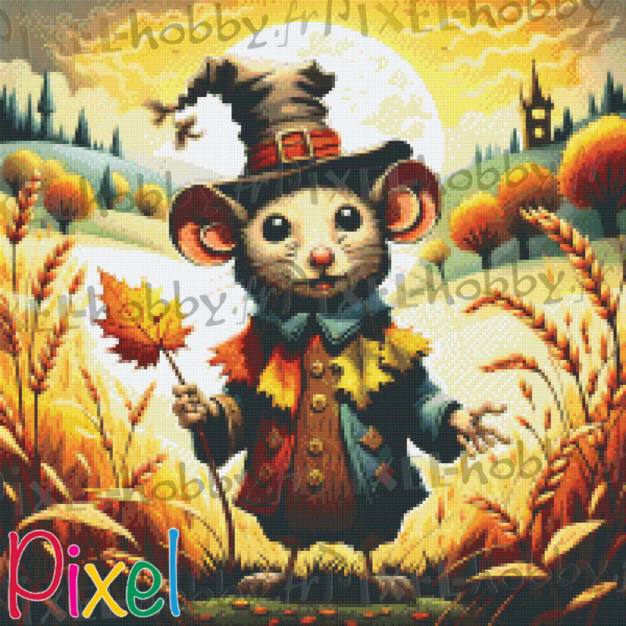 Le soleil se couchant derrière le chapeau du rat crée une atmosphère chaleureuse et romantique. Les teintes dorées et orangées du ciel pourraient symboliser la fin d'une journée, un moment de réflexion ou de contemplation. Cela apporte une luminosité douce qui illumine le personnage et le paysage alentour.
