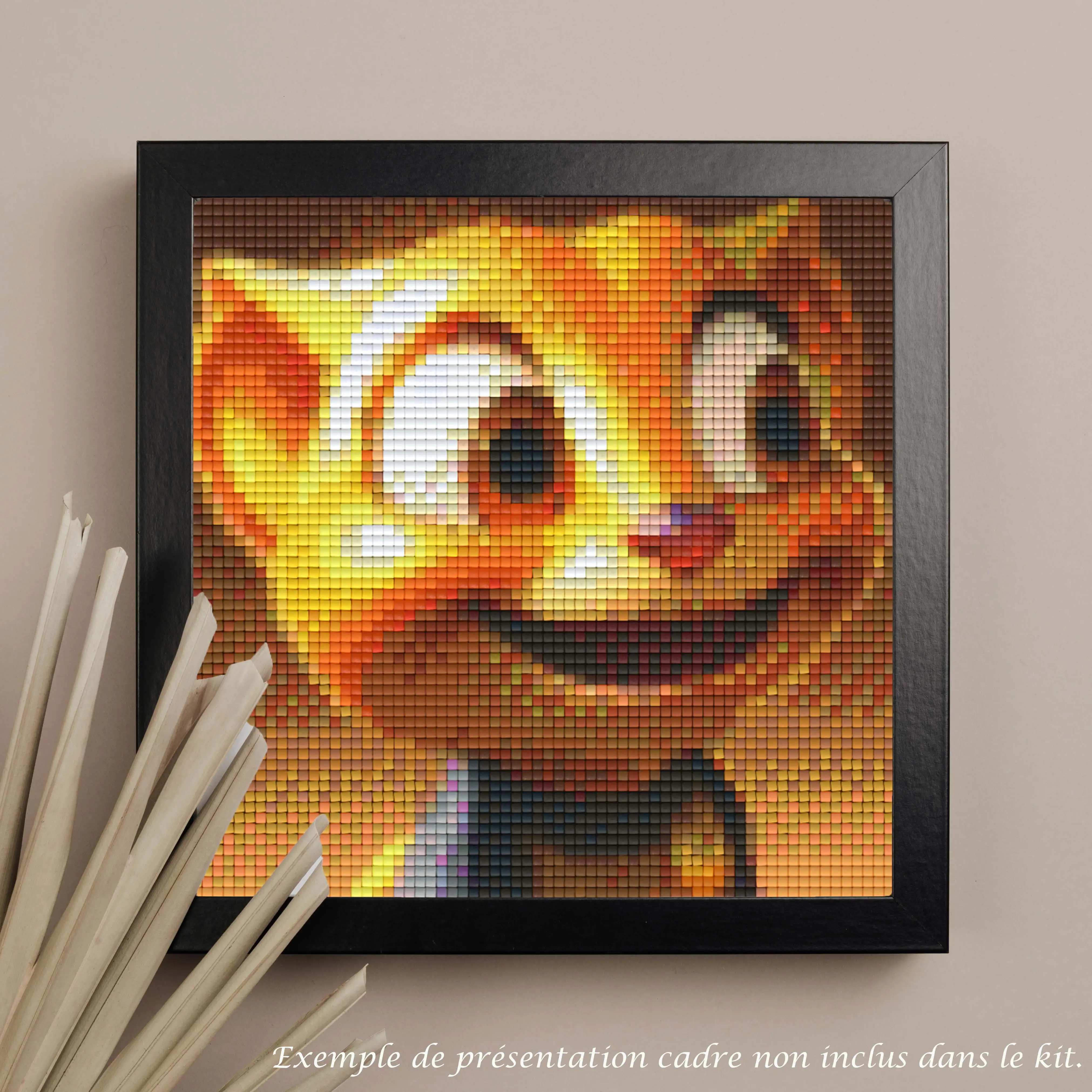 Un support carton bois avec attache est disponible en option afin de pouvoir suspendre au mur votre réalisation.