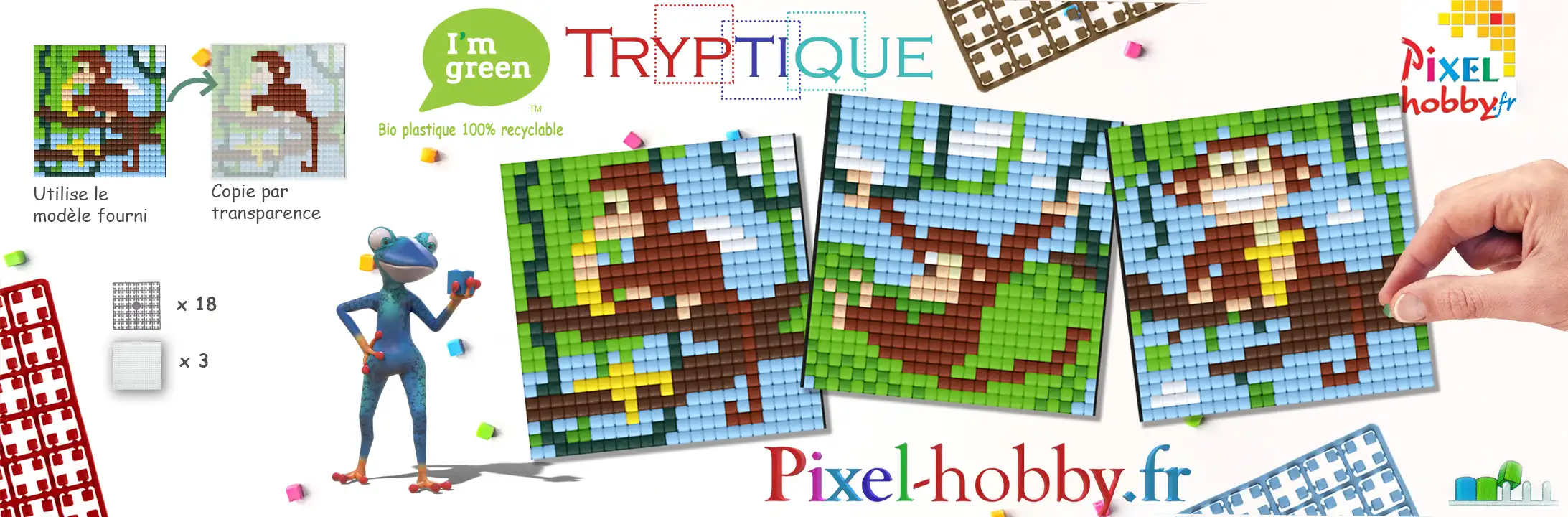 Kit pour la création de 3 carrés. Ce kit contient: 3 supports carrés 3 Modèles 18 carrés de pixels Il est possible de transformer les carrés en magnets (aimants vendus séparément). ..