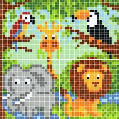 Petite scenette représentant la jungle, avec plusieurs animaux.