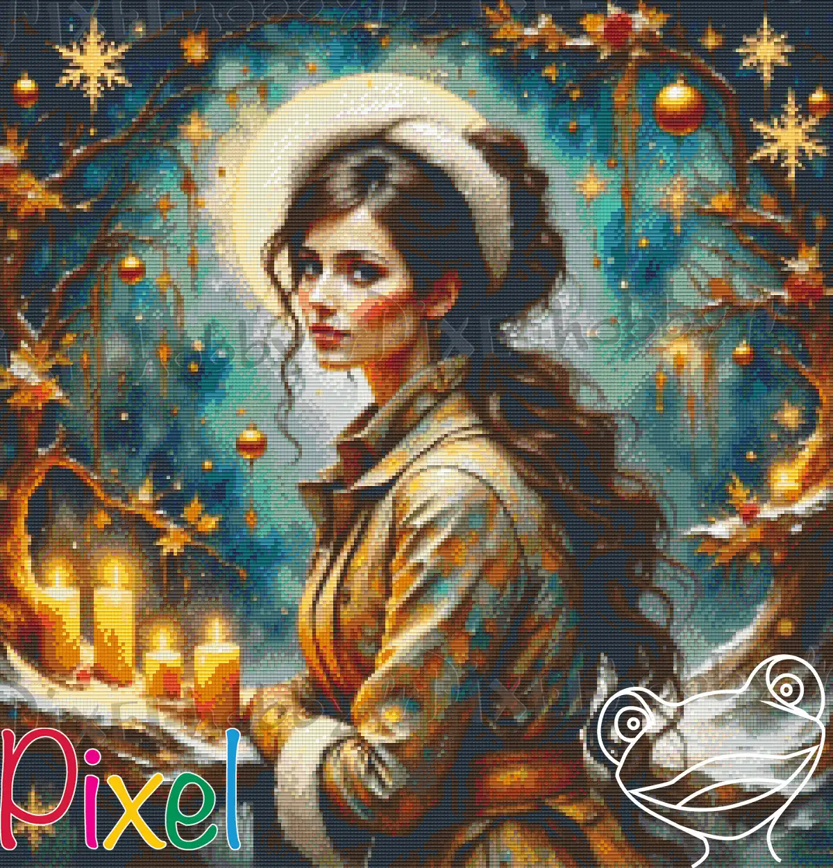 Par une nuit magique de Noël, lorsque la lune brillante illuminait doucement le ciel d'une lueur argentée, une jeune femme aux longs cheveux noirs se tenait seule au cœur d'une forêt enneigée. Son visage était empreint de sérénité, mais aussi d'une douce mélancolie qui trahissait une âme profondément sensible. Elle portait un manteau chaud et épais, soigneusement choisi pour la protéger contre le froid mordant de l’hiver, tandis que devant elle brûlaient plusieurs bougies dont la flamme vacillante diffusait une lumière dorée et tremblotante dans l’obscurité silencieuse.